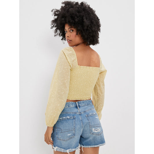 เสื้อเบลาซ์ผู้หญิง Smocked Ls Top Print