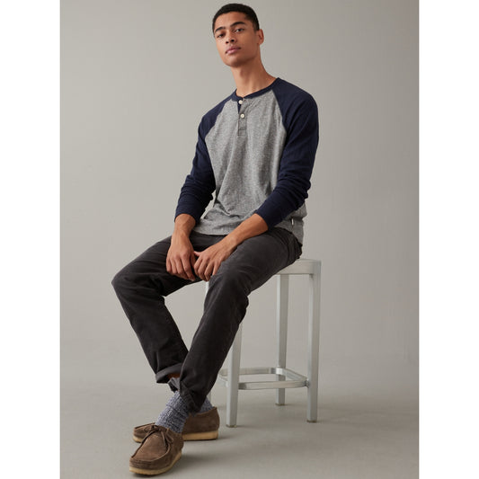 เสื้อยืดผู้ชาย K-3369 Ls Duofold Henley Raglan