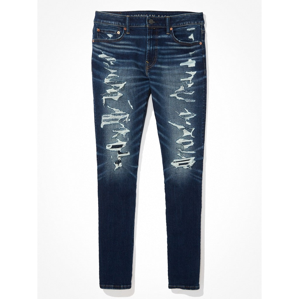 กางเกงยีนส์ผู้ชาย Dark Mended Athletic Skinny Fit