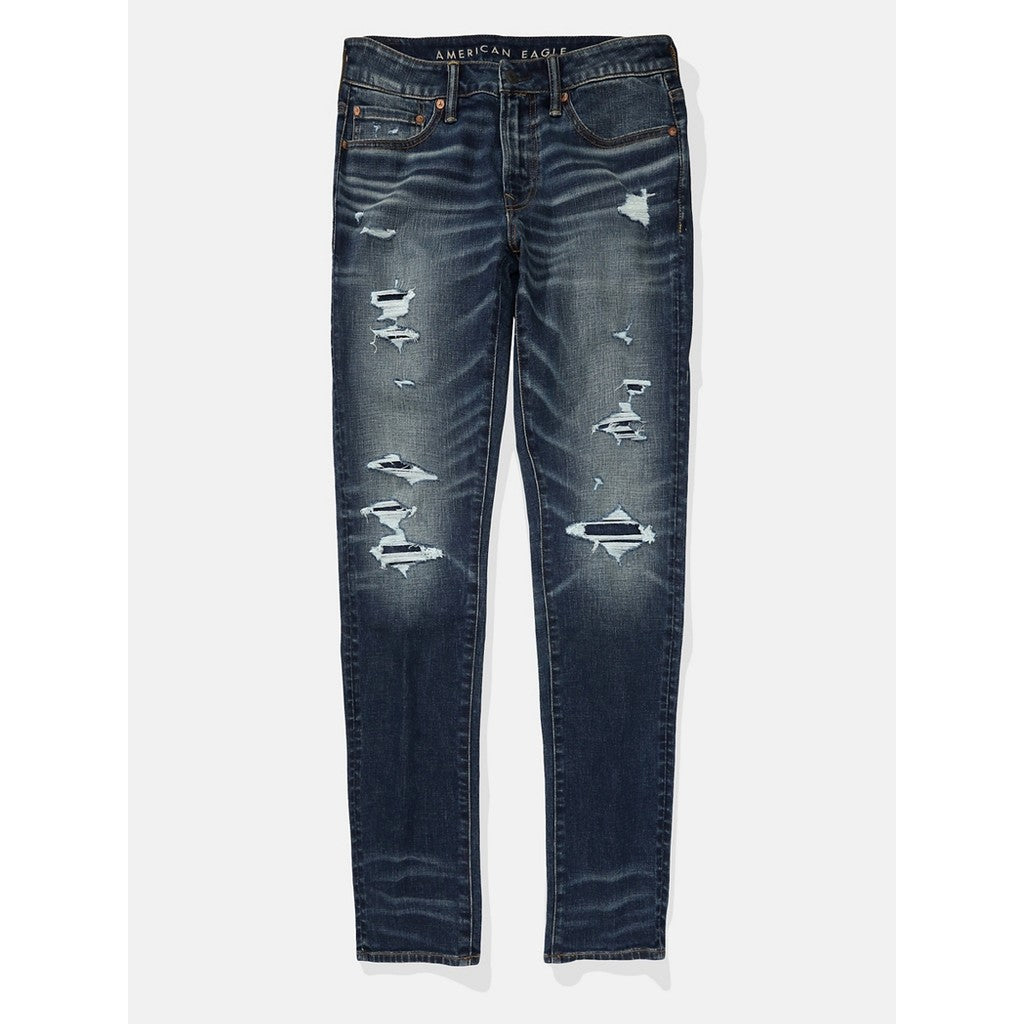 กางเกงยีนส์ผู้ชาย Intl Exclusive Dark Destroy Skinny Fit
